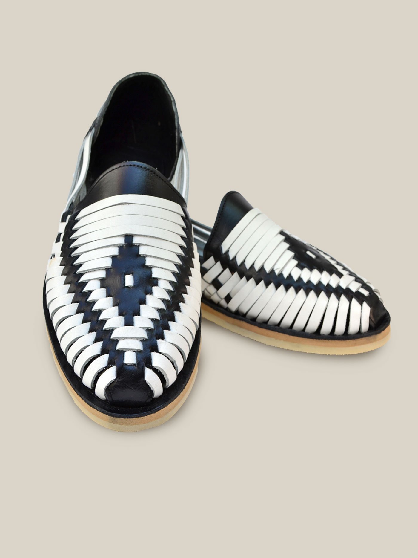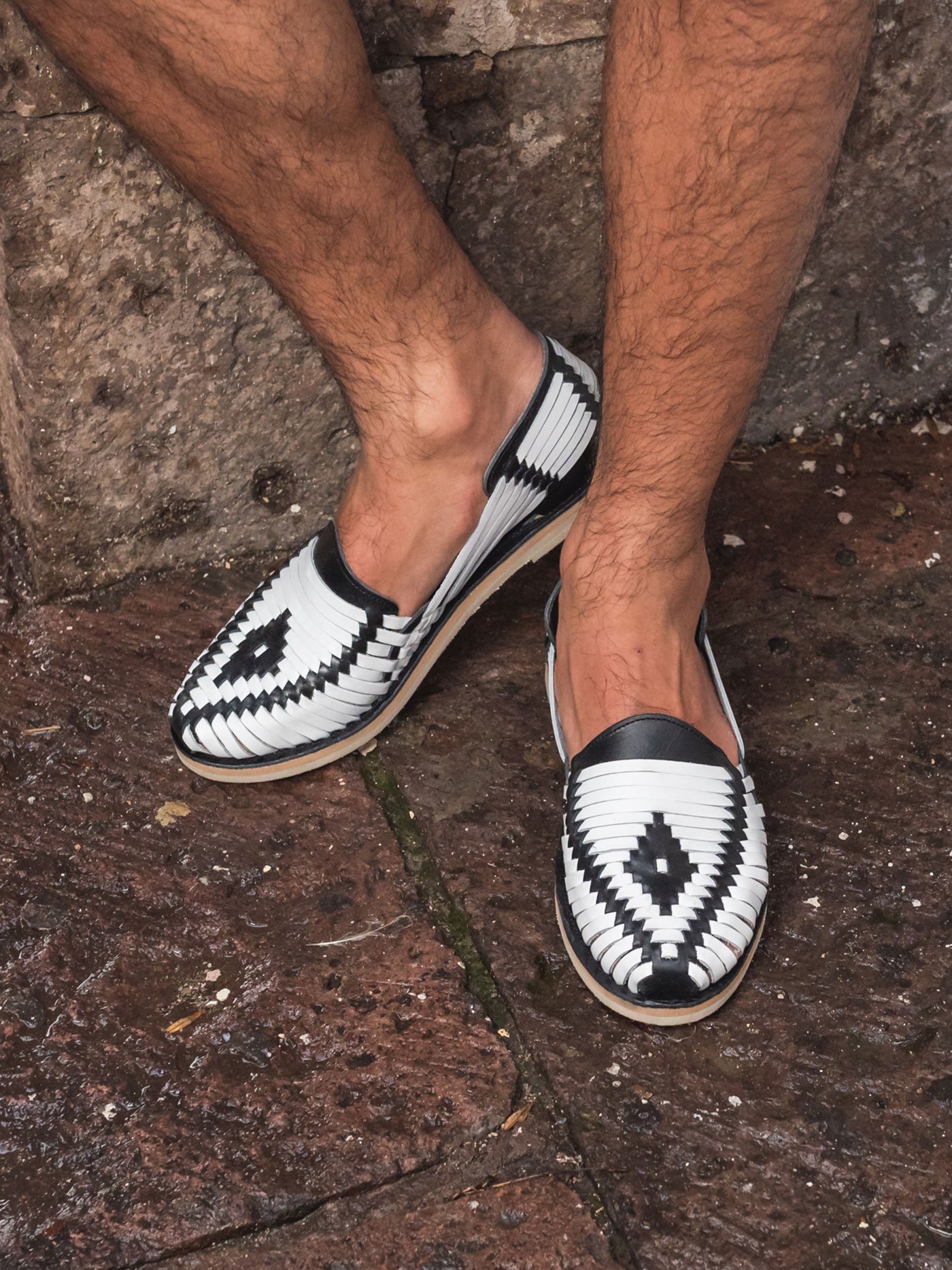 Huarache para hombre, confeccionado en piel de cordero, 100% natural, diseño mexicano tejido a mano, con zuela de caucho. Muy comodo y suave.