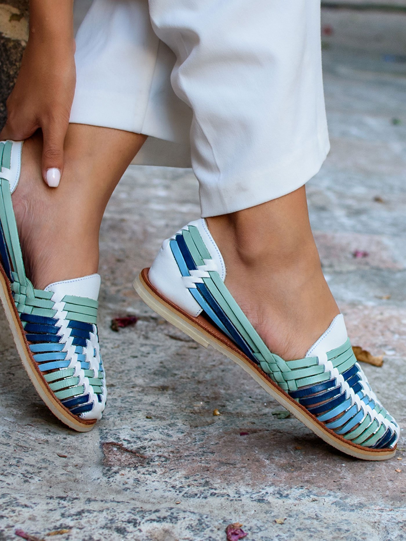 Huarache de piso para mujer, confeccionado en piel de cordero, 100% natural, diseño mexicano tejido a mano, con suela de caucho. Muy cómodo y suave.