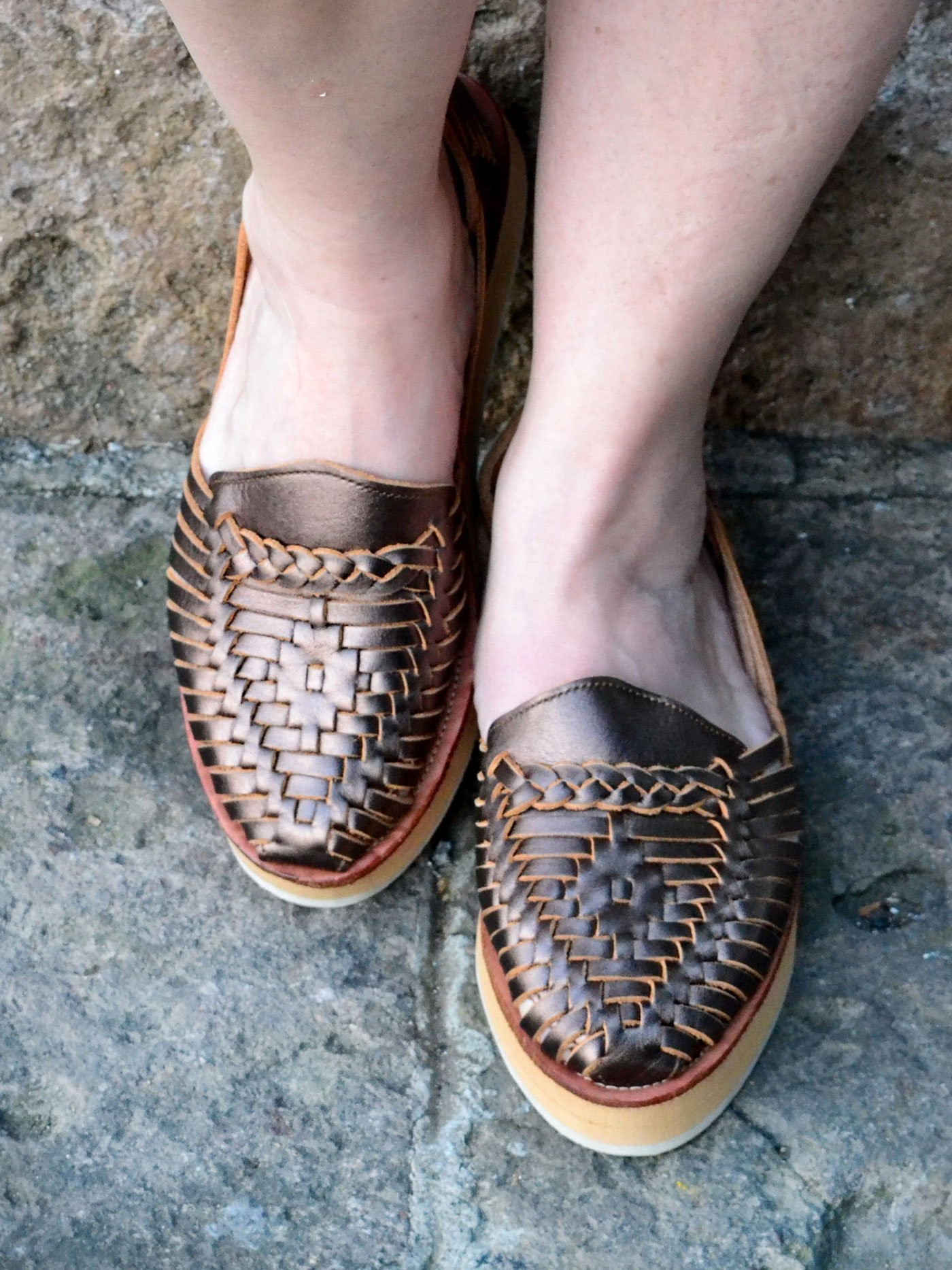Huarache tejido cobre / Piel