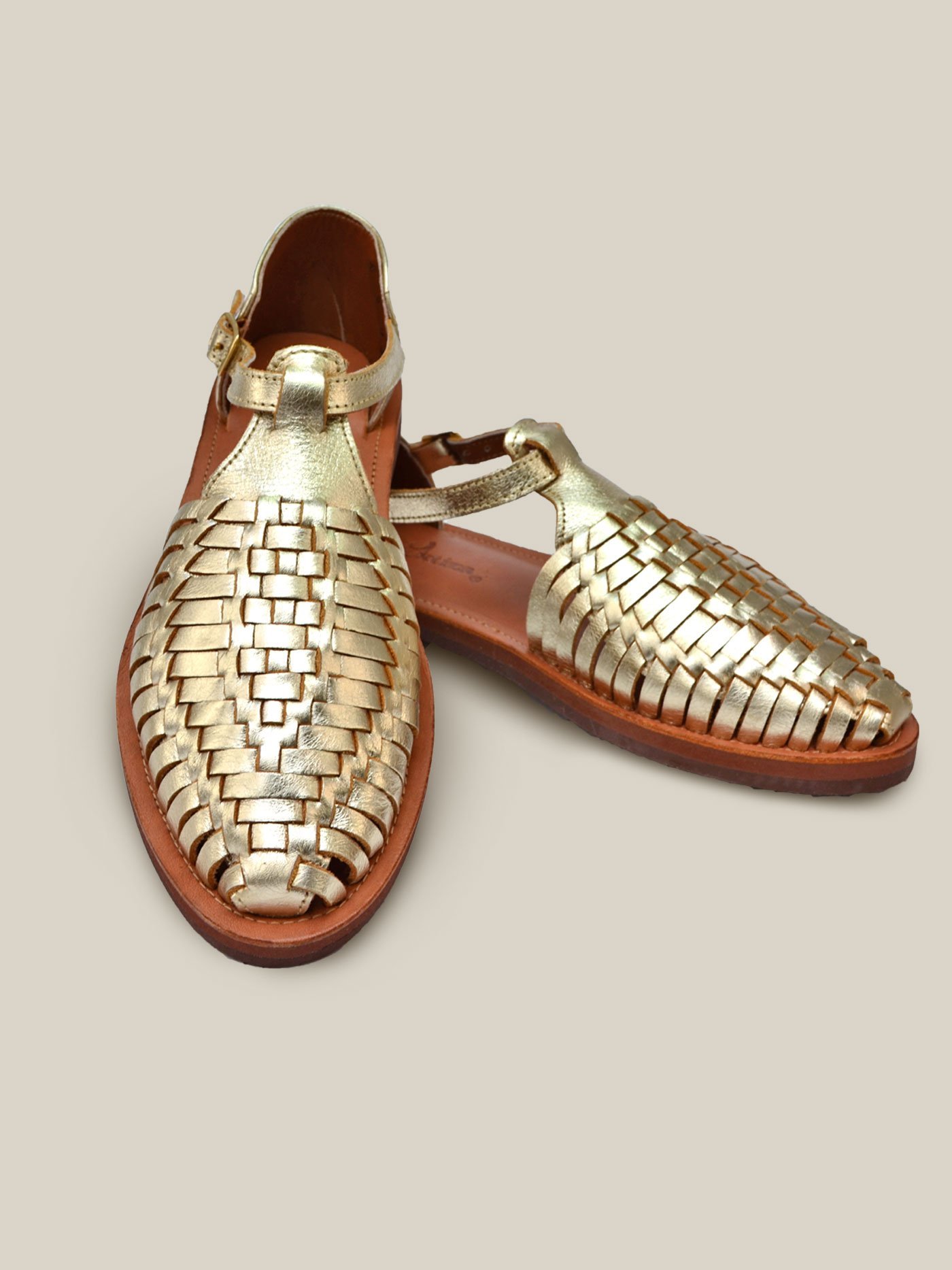 Huarache tejido dorado / Piel