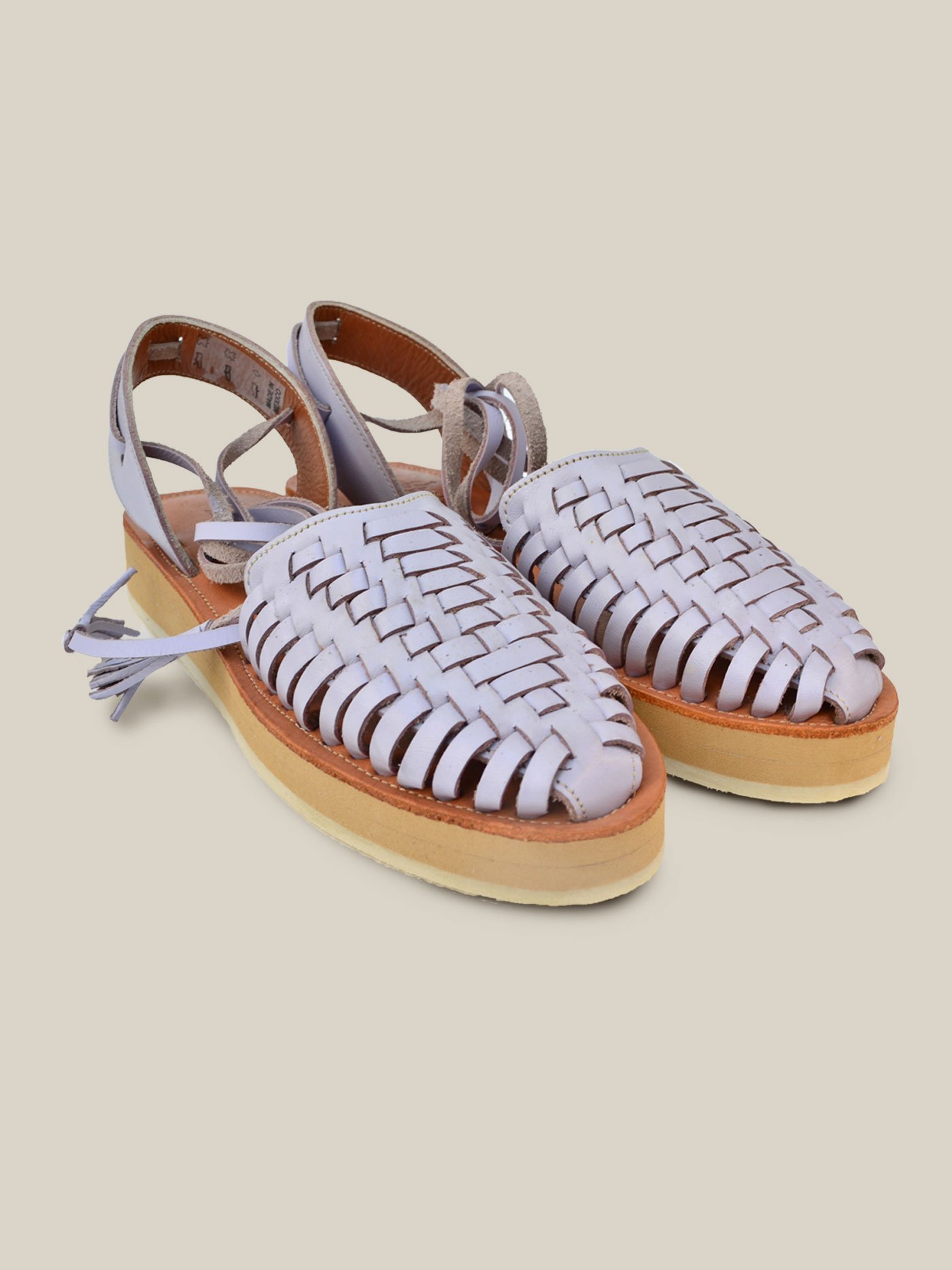 Huarache tipo plataforma para dama, confeccionado en piel de cordero, 100% natural, diseño mexicano tejido a mano, con suela de caucho. Muy cómodo y suave.