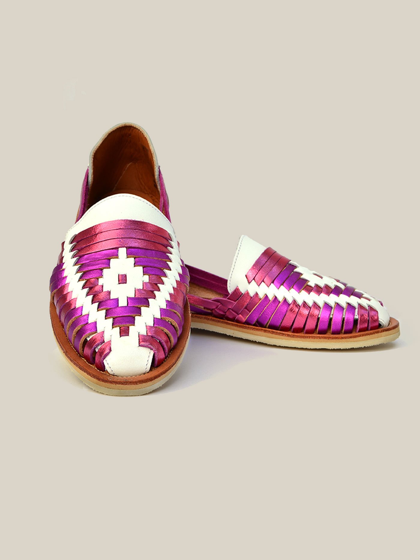 Huarache de piso para dama, confeccionado en piel de cordero, 100% natural, diseño mexicano tejido a mano, con zuela de caucho. Muy comodo y suave.