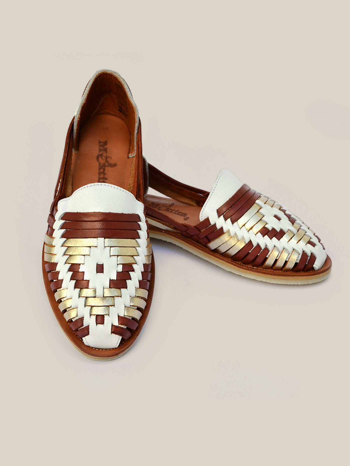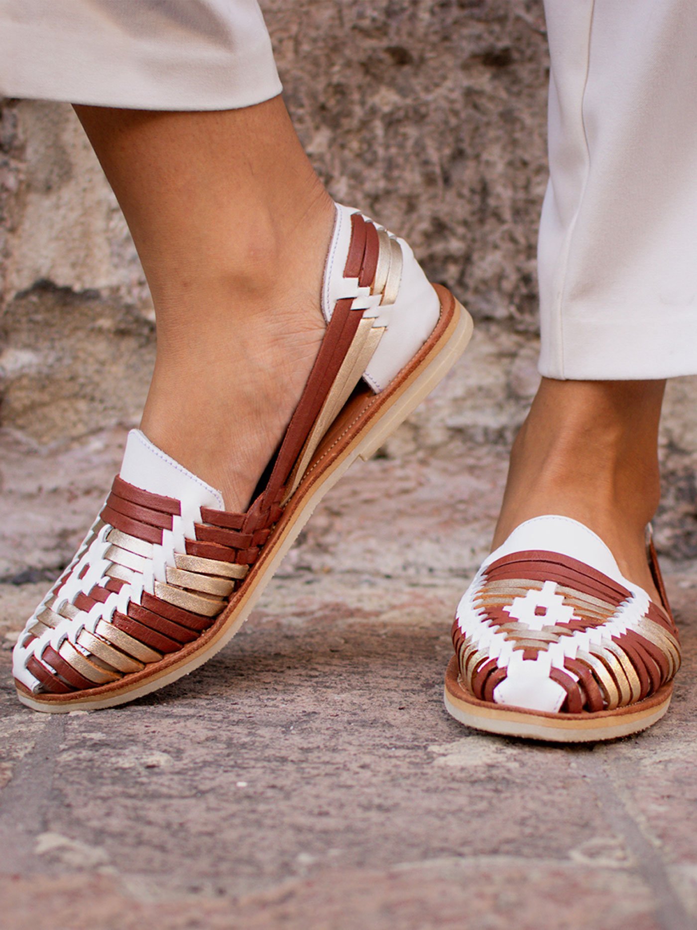 Huarache de piso para mujer, confeccionado en piel de cordero, 100% natural, diseño mexicano tejido a mano, con zuela de caucho. Muy comodo y suave.