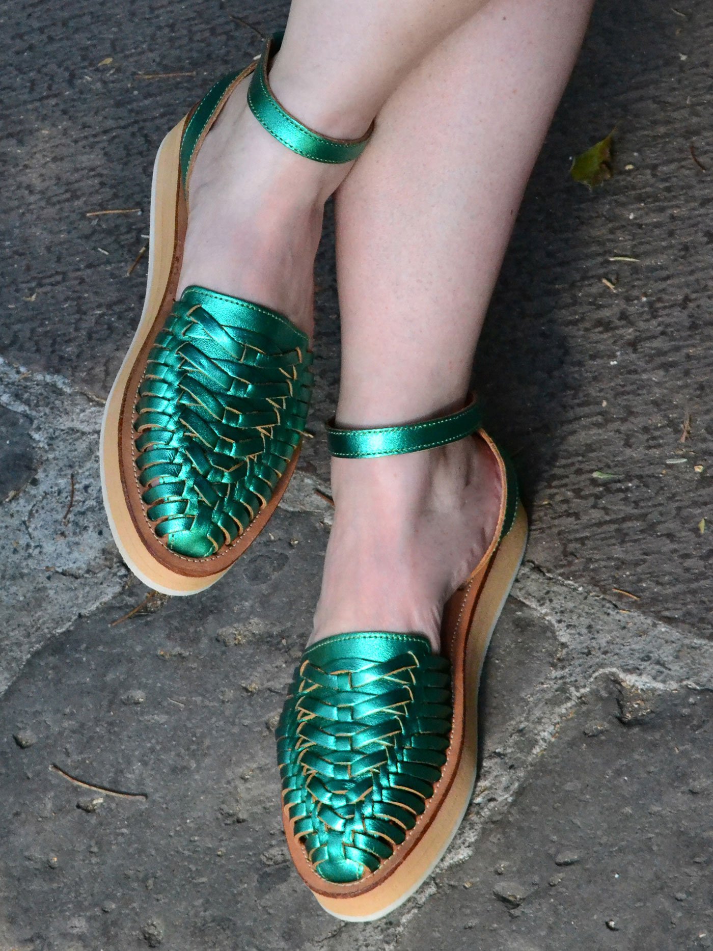Huarache de piso para dama, confeccionado en piel de cordero, 100% natural, diseño mexicano tejido a mano, con suela de caucho. Muy cómodo y suave.